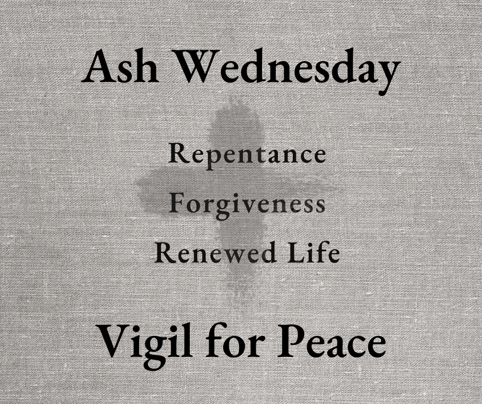 Lent is here! And the plan has CHANGED! Ashes to Go - We will have Ashes to Go in front of the Chapel during class change at 10:50 AM, 11:50 AM, 1:50 PM, 2:50 PM, and 3:50 PM. 12:30 PM Service - The 12:30 PM service will now be hybrid with an in person option. Join us … Continue reading Ash Wednesday & Vigil for Peace